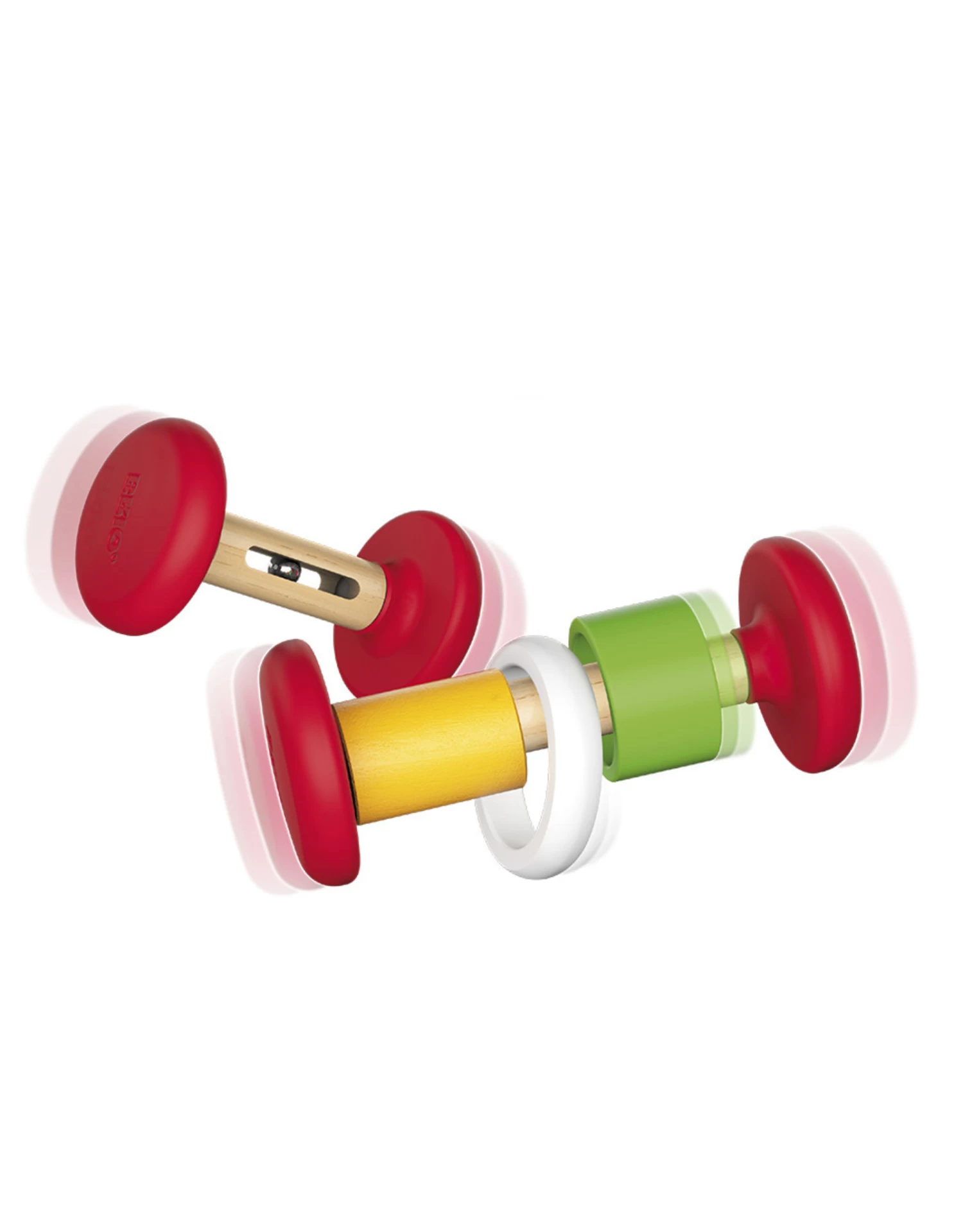 Met deze rammelaars is er meer te ontdekken! Probeer de rammelaar met de kraal en kijk hoe die heen en weer rolt. Ga verder met de andere rammelaar en ontdek de vormen met verschillende texturen, die in elkaar passen. Alles voor het jonge kind om nieuwe basisvaardigheden te leren.