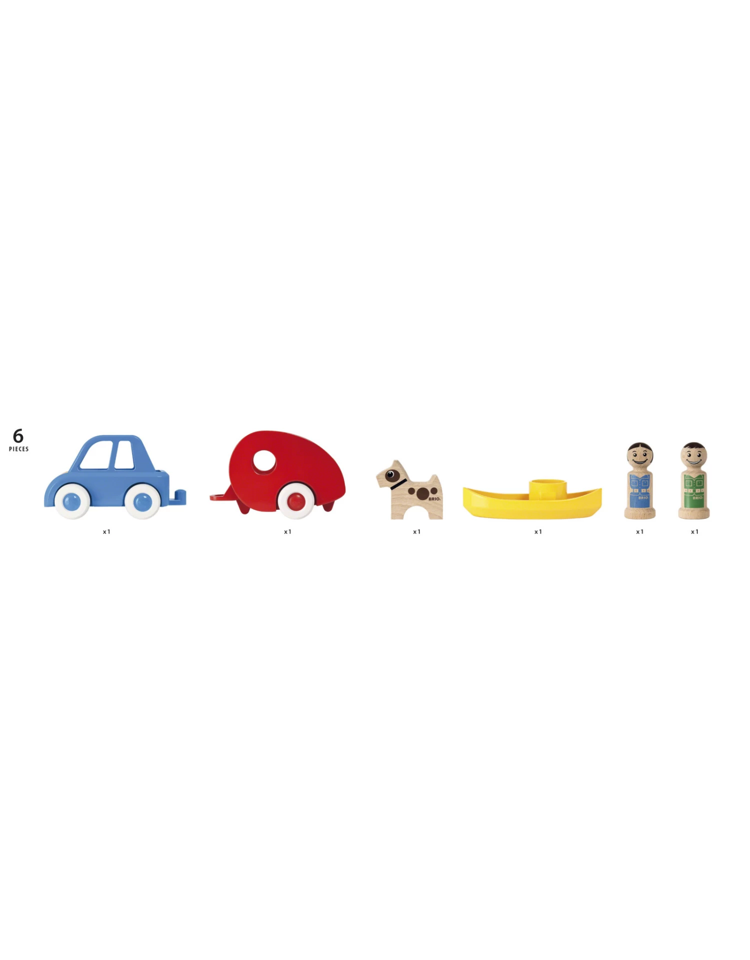 Tijd om te genieten van het buitenleven! De BRIO-kampeerset is een klein wonder van speels design, met functies die je kind leuk vindt. Alle familieleden passen in deze speelgoedcaravan wanneer het tijd is om te gaan. De kano past netjes op de auto – en heeft zelfs plaats voor de hond wanneer je wegpaddelt.