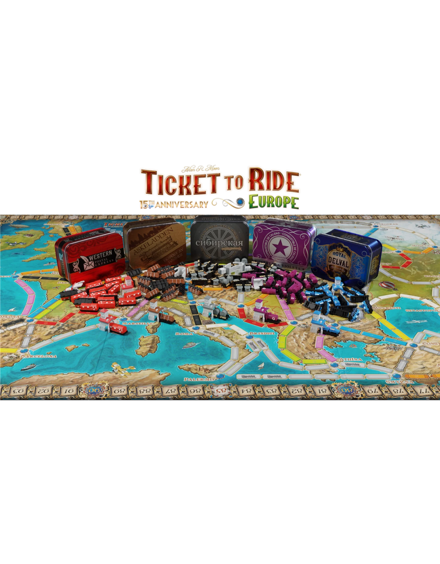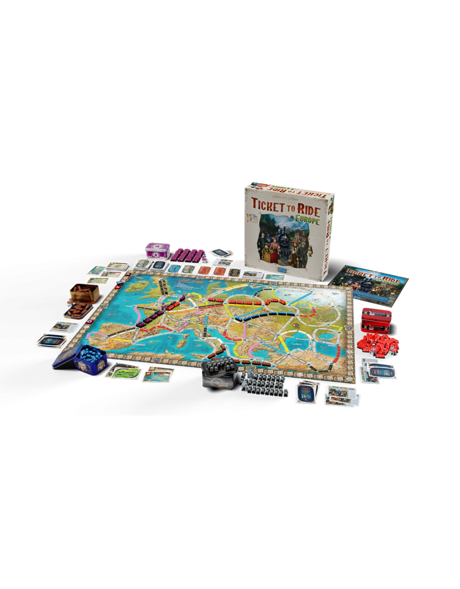 Het bordspel Ticket to Ride Europe in een 15th Anniversary Edition! Met deze jubileumeditie van Ticket to Ride® Europe vieren we jaren van spannende treinavonturen voor veel families en vrienden over de hele wereld.