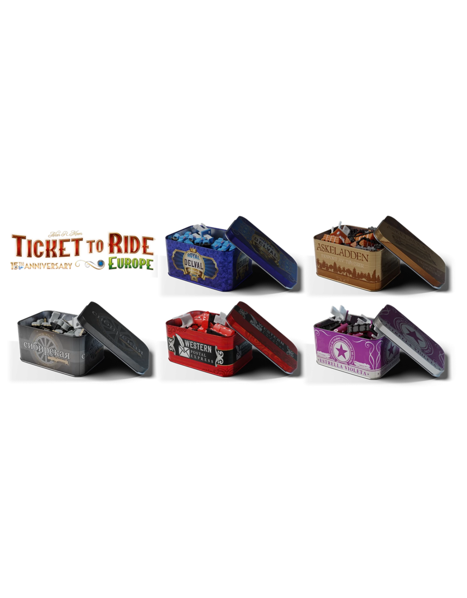 Dankzij een extra groot spelbord met nieuwe illustraties, zeer gedetailleerde treintjes en treinstations in prachtige blikjes, maar ook elke bestemmingskaart die ooit verschenen is sinds de eerste uitgave, is dit met recht een unieke jubileumeditie van Ticket to Ride® Europe!