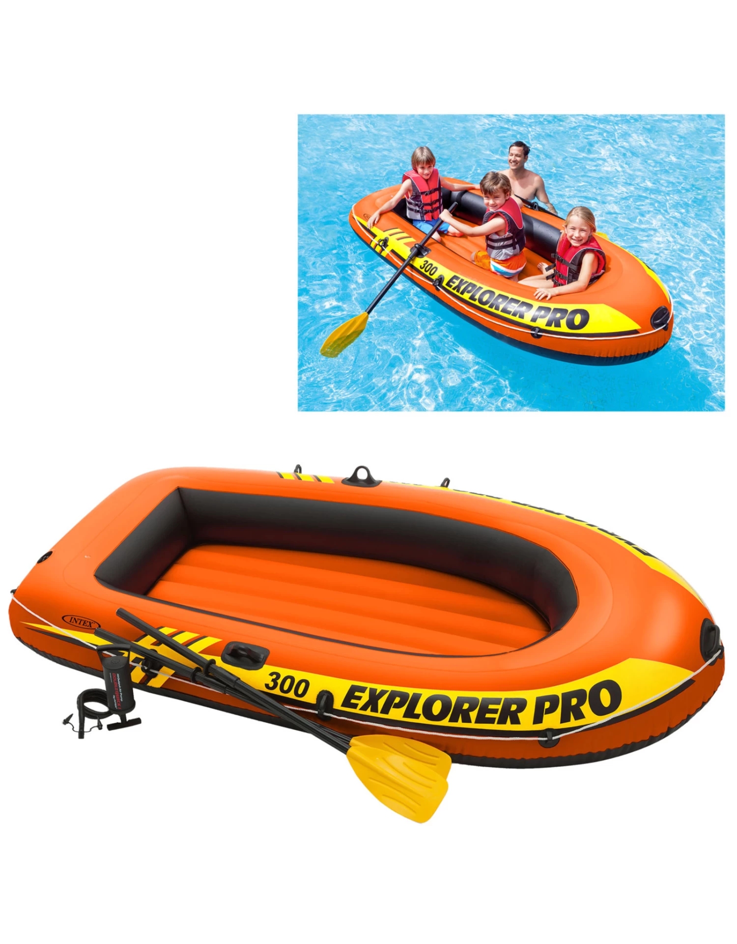 Fraaie Intex Explorer Pro boot voor 3 personen: maximaal 200 kg. Afmetingen: 244 x 117 x 36 cm. In rood-gele kleurstelling. Voorzien van 3 luchtkamers met extra binnenluchtkamer voor extra drijfvermogen en een opblaasbare bodem. Voorzien van roeidollen, grijpkoord en handgreep op de boog. Inclusief peddels en pomp. Geschikt voor kinderen vanaf 6 jaar.