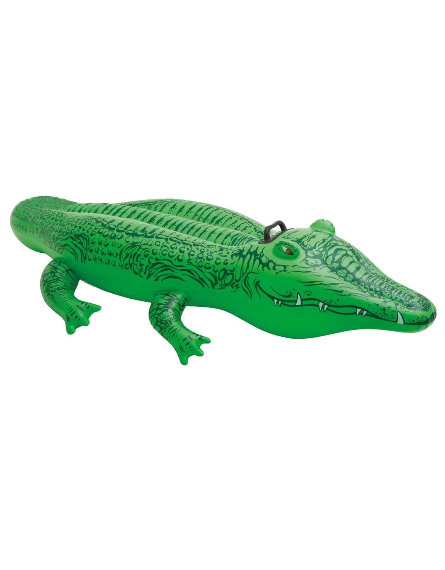 Ride on krokodil, met twee handgrepen voor een stabiele zit. Afmetingen: 168 x 86 cm. Vervaardigd van stevige kwaliteit vinyl. Inclusief reparatiesetje. Geschikt voor kinderen vanaf 3 jaar.