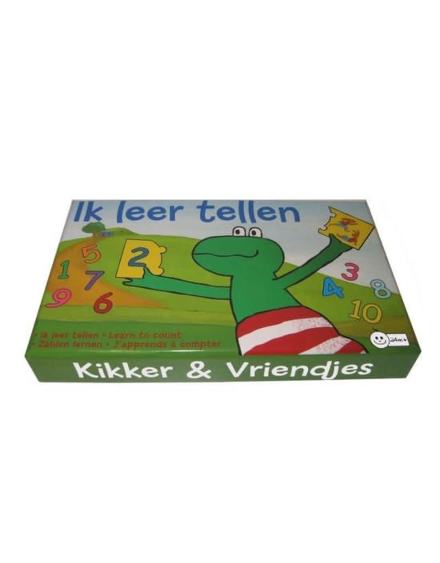 Kinderen leren tellen met Kikker! Dit leuke spelletje is zeer geschikt voor kinderen vanaf een jaar of twee. Twee puzzelstukken, met op de één een aantal personages en op de andere het bijbehorende cijfer, moeten steeds worden gecombineerd. Vier springende konijnen horen bij het cijfer 4, wat ook is af te leiden uit de corresponderende achtergrondkleuren. Dit spel stimuleert zowel de fijne motoriek als het combinatievermogen van jonge kinderen.