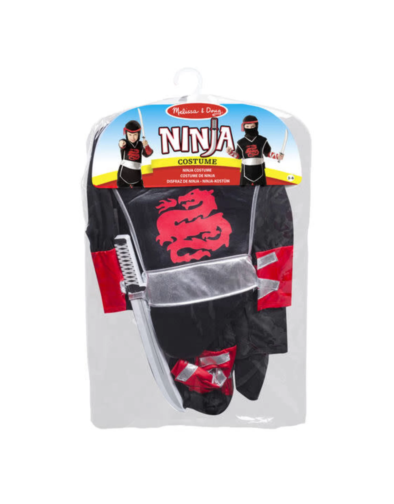 Niemand zal je kleine ninja zien aankomen! Deze set bestaat uit een tuniek met lange mouwen, een broek met zilveren accenten, een zachte capuchon en een zacht zwaard!