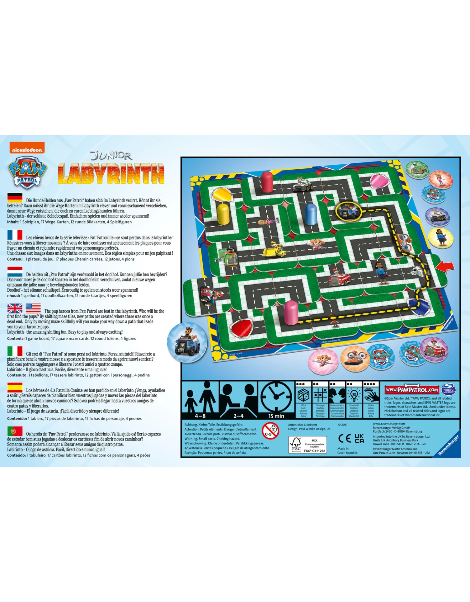 De helden uit Paw Patrol zijn verdwaald in het doolhof. Kunnen jullie hen bevrijden? Daarvoor moet je de doolhof- kaarten in het doolhof slim verschuiven, zodat nieuwe wegen ontstaan die naar jullie lievelingshonden leiden. Doolhof – het slimme schuifspel. Eenvoudig te spelen en steeds weer spannend!