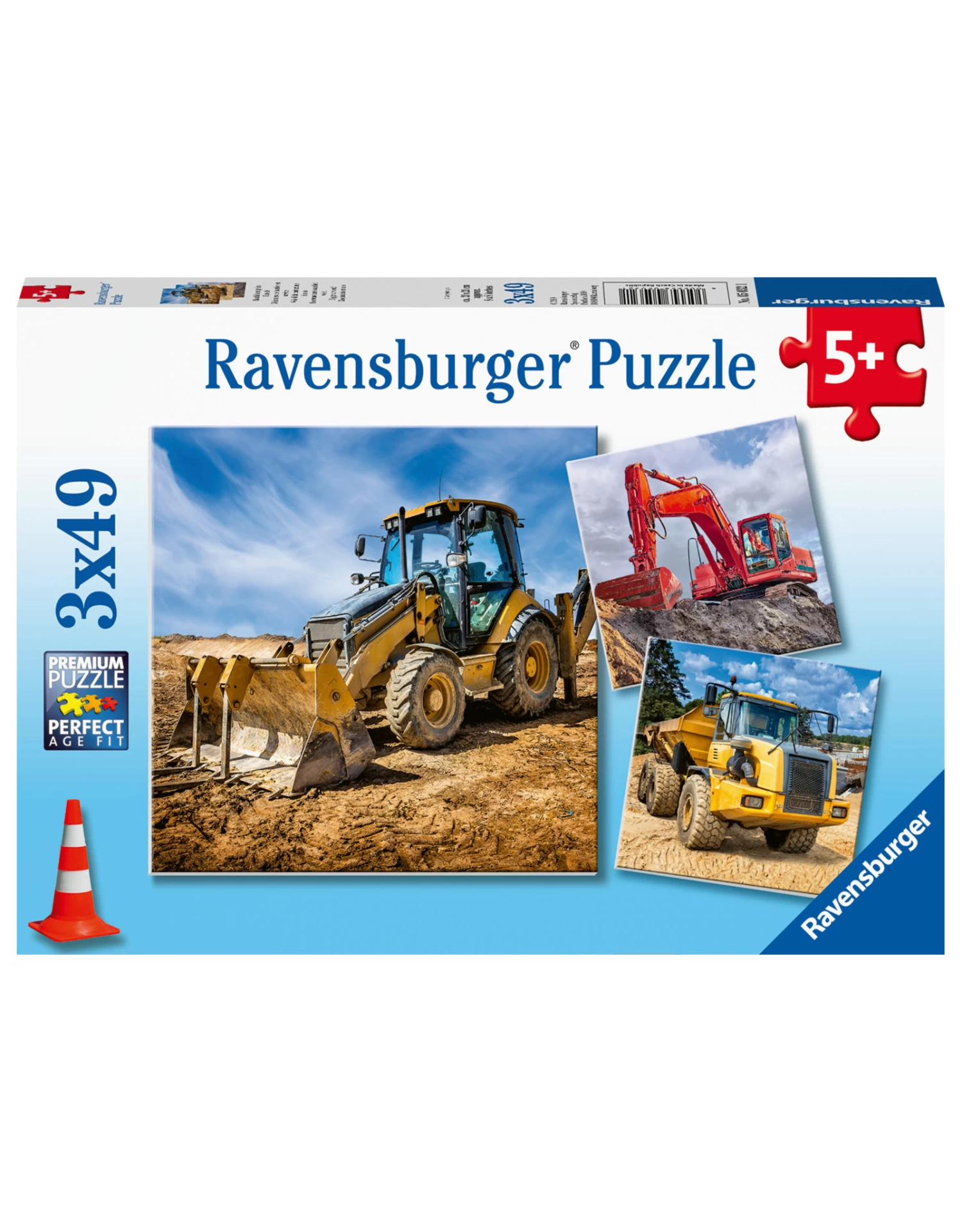 Ontsnap uit de realiteit en stap in de wereld van Ravensburger puzzels. Tijdens het puzzelen ontdekken kinderen hun grootse vaardigheden. Echt puzzelen met 49 stukjes. Vanaf vijf jaar kunnen kinderen een puzzel van 49 stukjes maken. De drie afbeeldingen in 1 doos zorgen voor de nodige afwisseling. Dankzij de met de hand gemaakte stansmessen is de vormvariatie van de stukjes oneindig. Kinderen vanaf 5 jaar zullen genieten van de Bouwmachines aan het werk puzzels met 49 stukjes. Ravensburger puzzels met 49 stukjes met als thema de bouw.