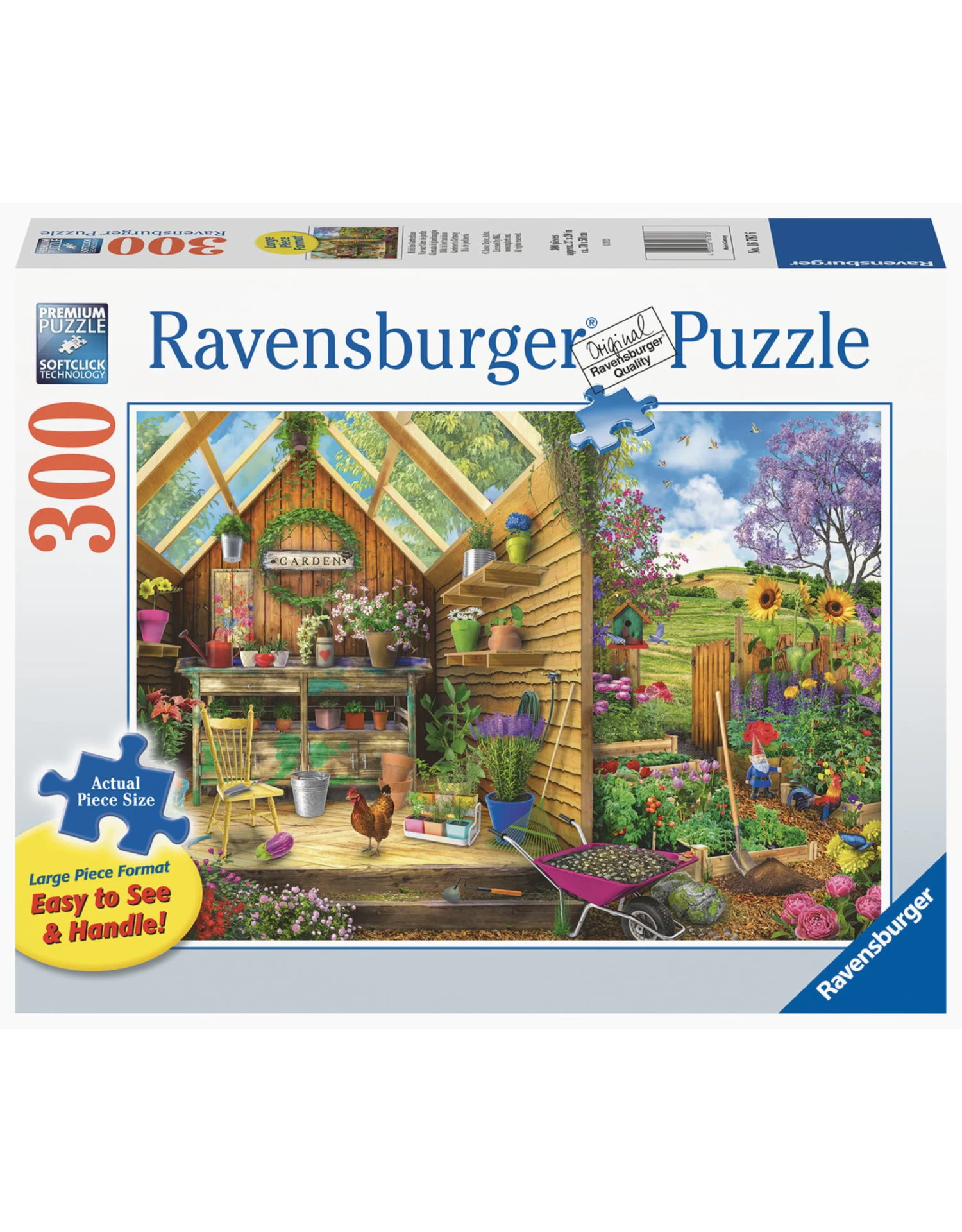 Deze Ravensburger puzzel met grotere puzzelstukken is eenvoudiger te leggen. Het resultaat is een kunstwerk van groot formaat. Jong en oud zullen genieten van de Blik in het tuinhuis 300 stukjes puzzel met als thema kunst.