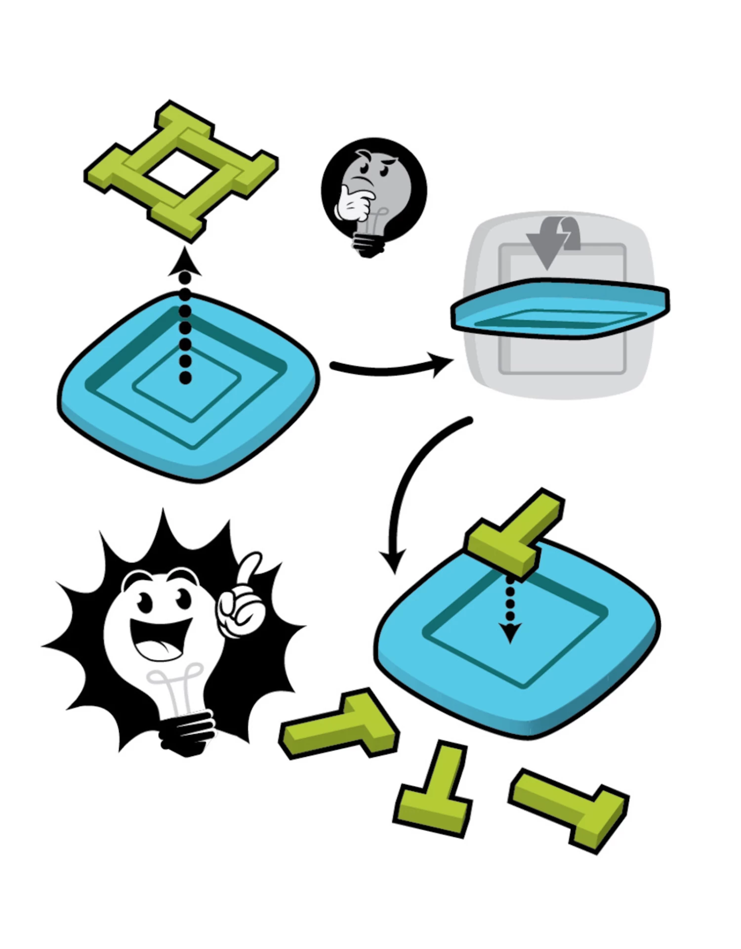 Daag jezelf uit: pak de vier T’s en plaats ze op zo’n manier, dat ze in het kleinere frame passen.