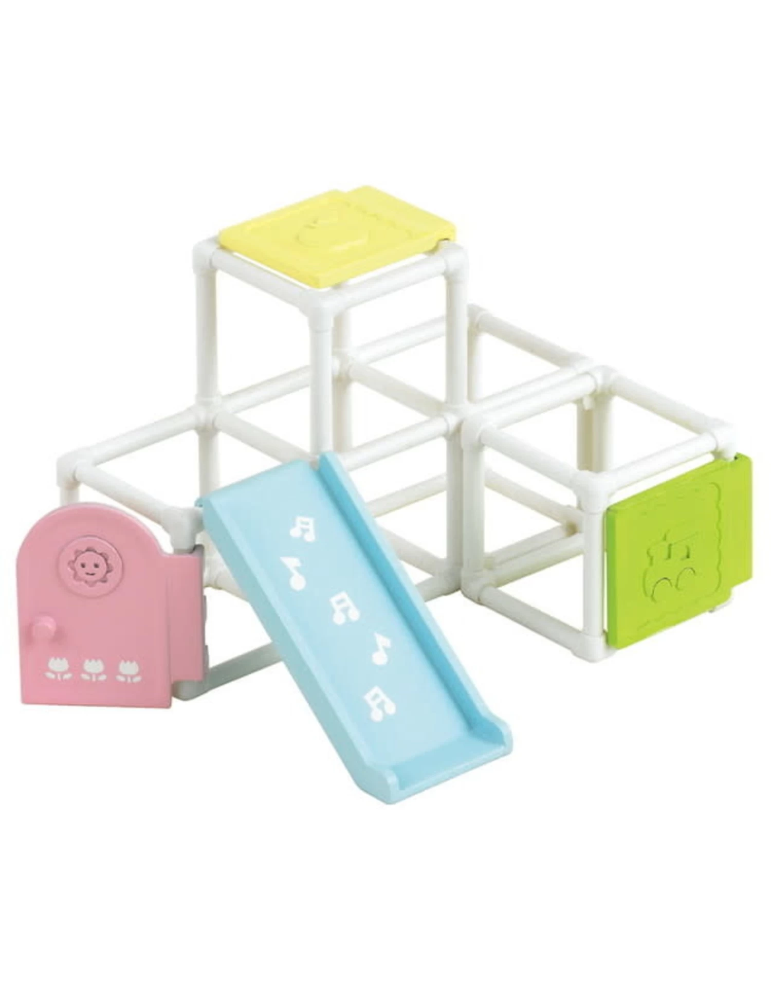 Inhoud: 1 klimrek, 1 glijbaan, 1 deur, 2 panelen.